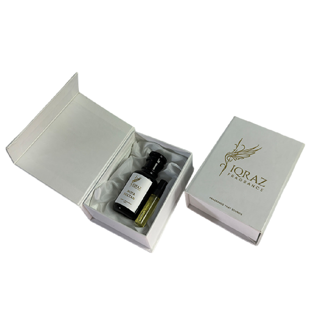 Housed in a pristine white box with gold embossed branding and a satin-lined interior, the NIOR SULTAN set includes a full-size 50ml bottle and a sleek travel spray. The winged logo and minimalist design reflect the brand’s commitment to beauty, quality, and enduring style.